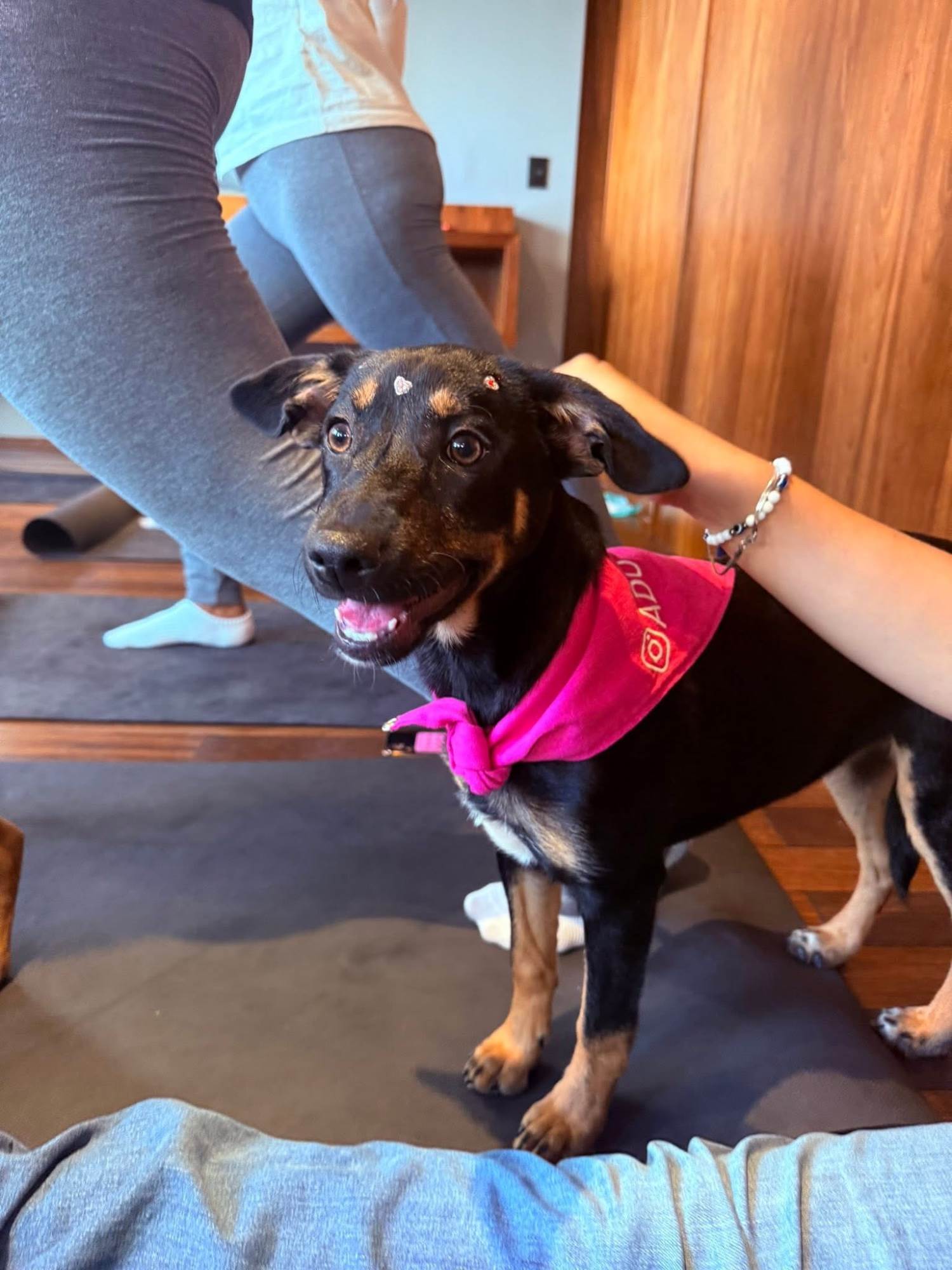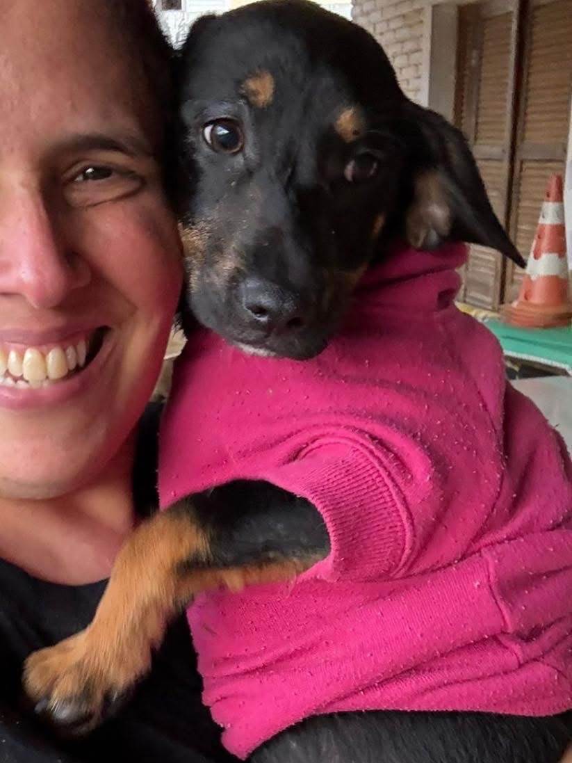 Ela é porte pequeno para médio, já está com 6 meses de idade, filhote da Nicole, que é pequena.
