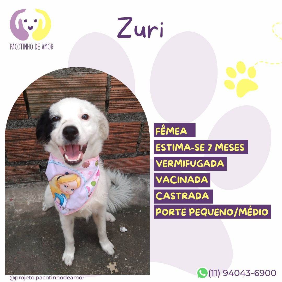 Zuri  Fêmea   Raça: SRD-ViraLata  Porte: Pequeno   Idade: 7 a 11 meses Pelagem: Branca/Preta    Critérios para adoção