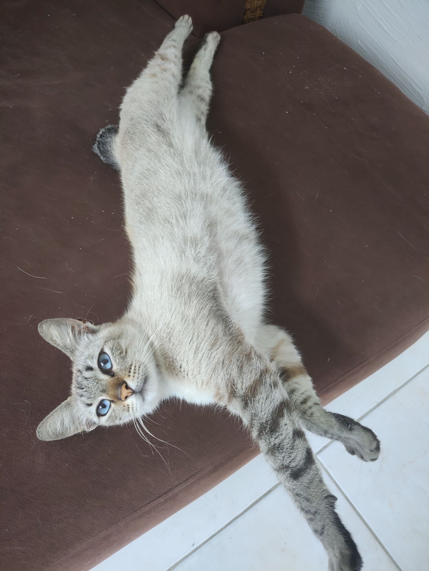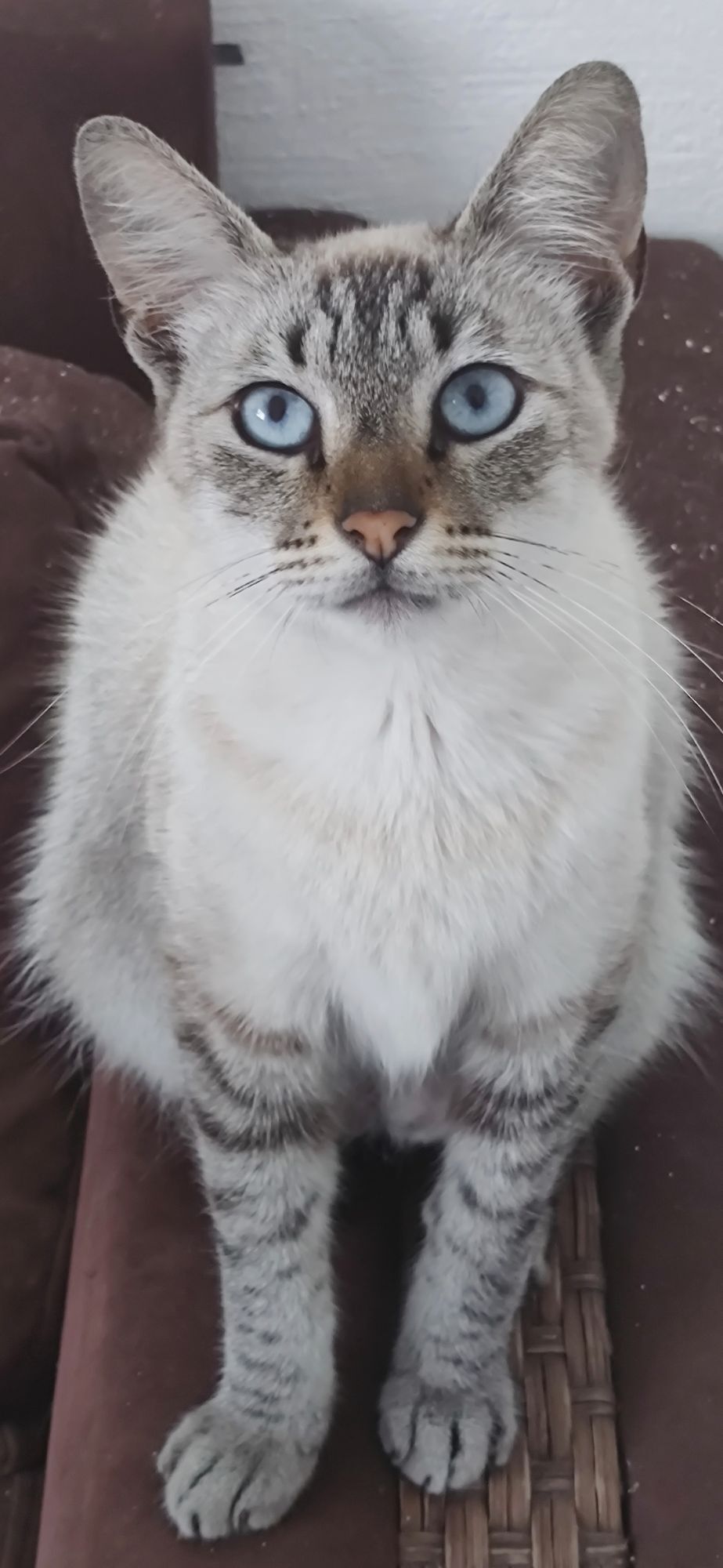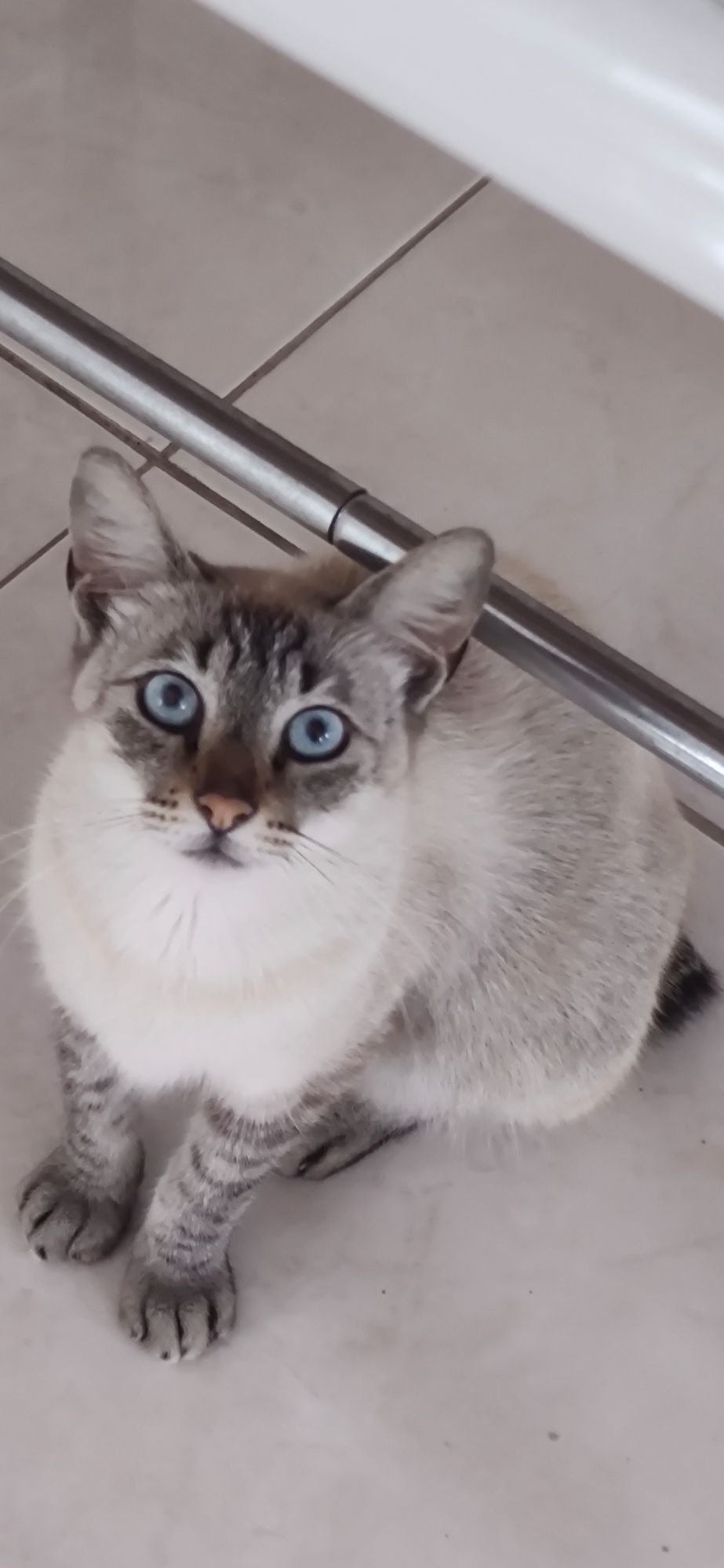 Aparece sempre por aqui, vai e volta pedindo comida, dorme no quintal, muito carinhoso, gosta de atenção, "conversador", mas ja deve ter sido judiado, porque é bem assustadinho. Meus gatos nao aceitam ele. Merece uma familia que goste de animais grudentinhos e tenha bastante espaço. Ele não gosta muito de ficar preso.