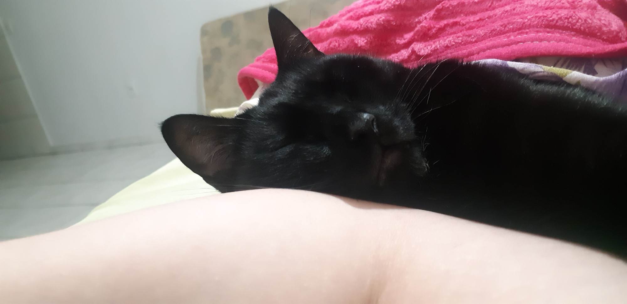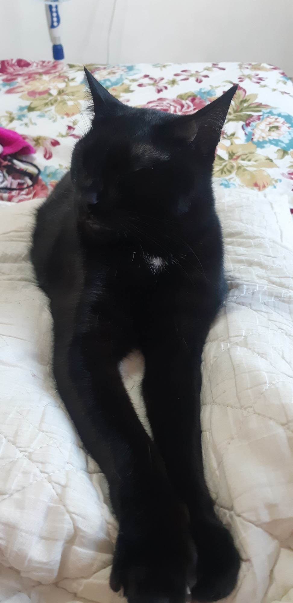 Dócil e calmo. Ama dormir e carinho