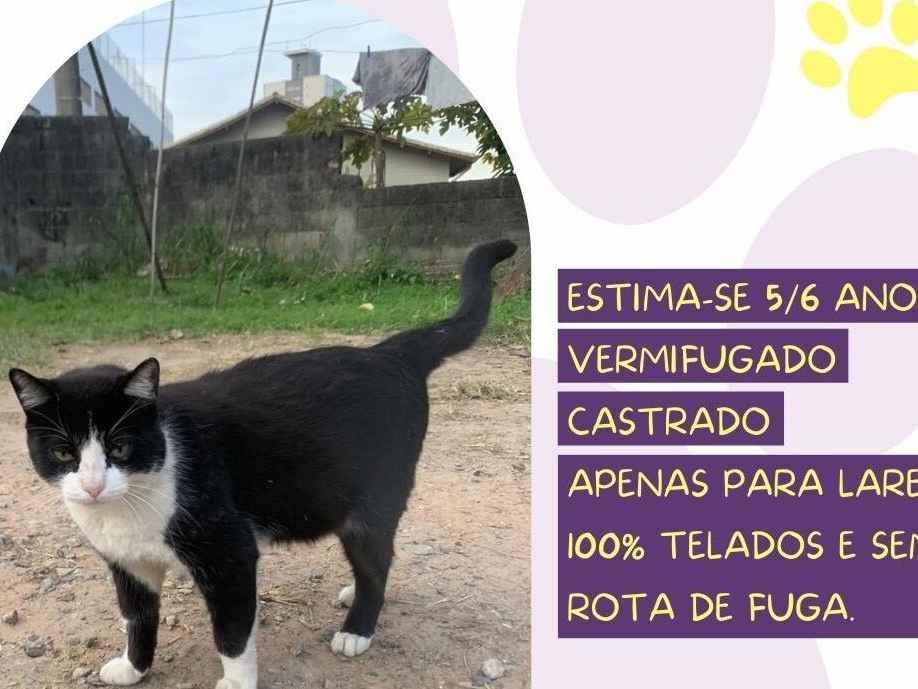 Félix  Macho   Raça: SRD-ViraLata  Porte: Pequeno   Idade: 6 anos Acima Pelagem: Branca/Preta