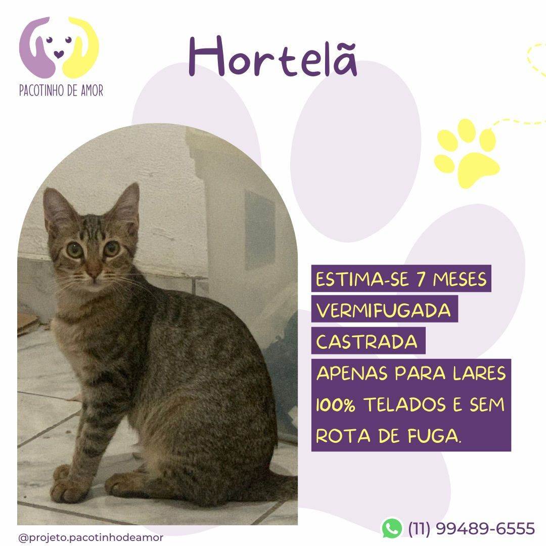 Hortelã  Fêmea   Raça: SRD-ViraLata  Porte: Pequeno   Idade: 7 a 11 meses Pelagem: Rajada    Critérios para adoção