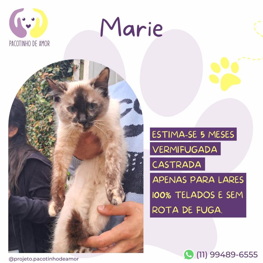 Marie  Fêmea   Raça: SRD-ViraLata  Porte: Pequeno   Idade: 2 a 6 meses Pelagem: Branca/Preta    Critérios para adoção