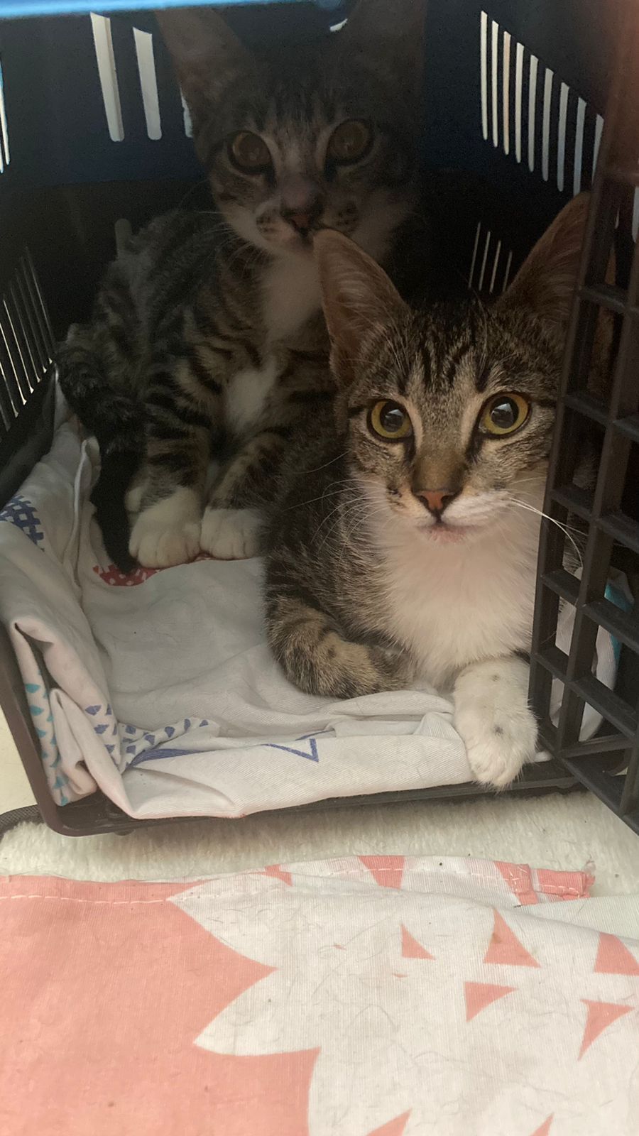 Essas duas pequenas apareceram no quintal da Cintia, na cidade de São Paulo – bairro Freguesia do Ó. Com aproximadamente 5 meses de idade, já estão castradas e têm exames de FIV e FELV negativos, prontas para começar uma nova etapa da vida com saúde e segurança.