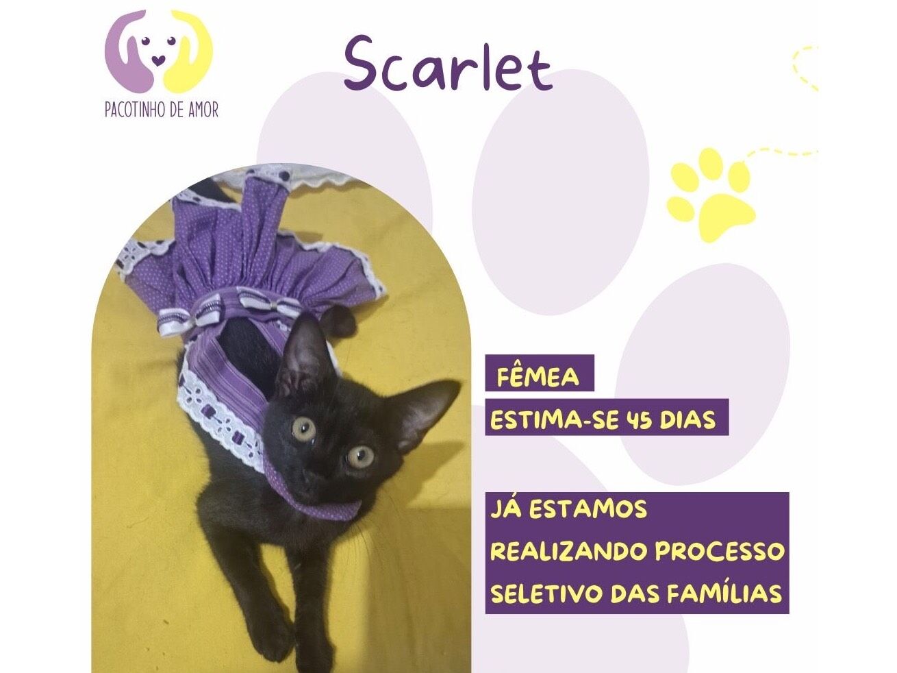 Scarlet  Fêmea   Raça: SRD-ViraLata  Porte: Pequeno   Idade: Abaixo de 2 meses Pelagem: Preta