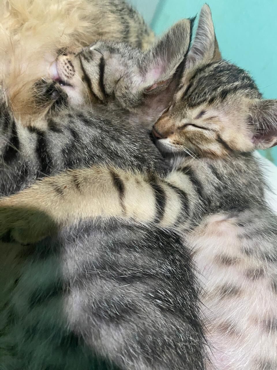 Duas gatas fêmea, filhote, q cinzas tigradas, 50 dias de vida