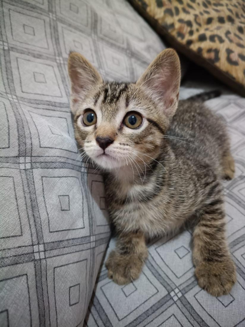 🌟 Conheça essa adorável gatinha! Ela está cheia de vida e tem um charme especial. Com sua pelagem cinza listrada e olhos brilhantes, ela com certeza vai conquistar seu coração! 🏡