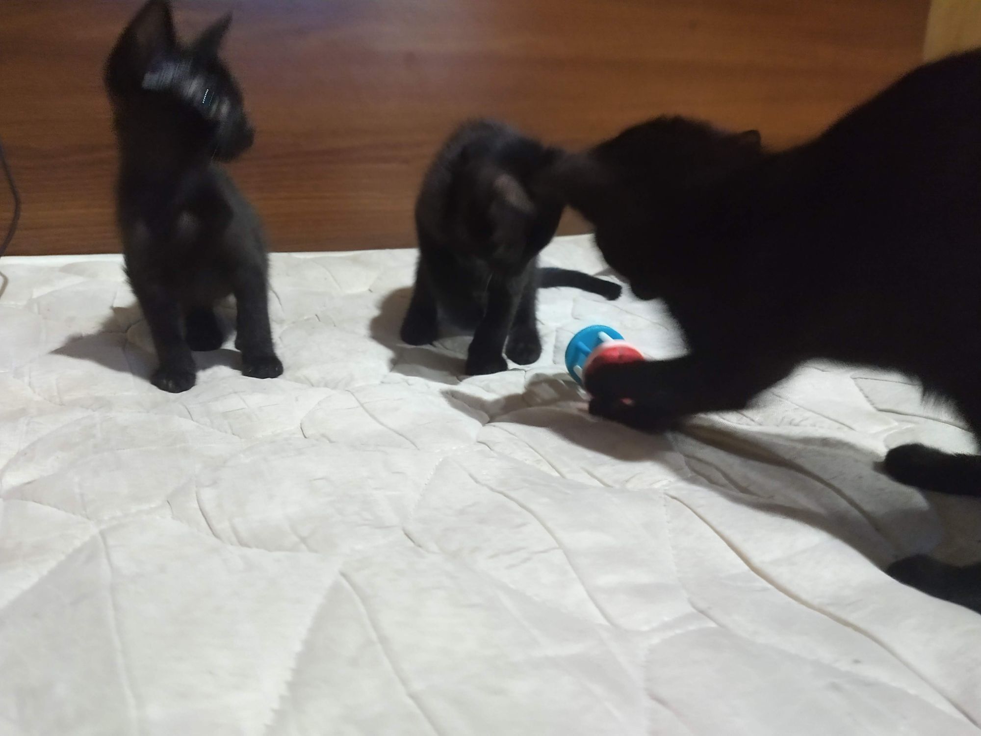 Estou doando quatro gatinhas, todas nascidas em casa, de pai e mãe meus. Motivo da doação é que são muitos e não posso cuidar como elas merecem. São quatro fêmeas, lindas e carinhosas. Algumas tem uns pontos brancos e outras cem por cento pretas. Maravilhosas e amorosas, todas com pelo curto. Desejo que tenham uma família linda e amorosa como elas são e merecem.
