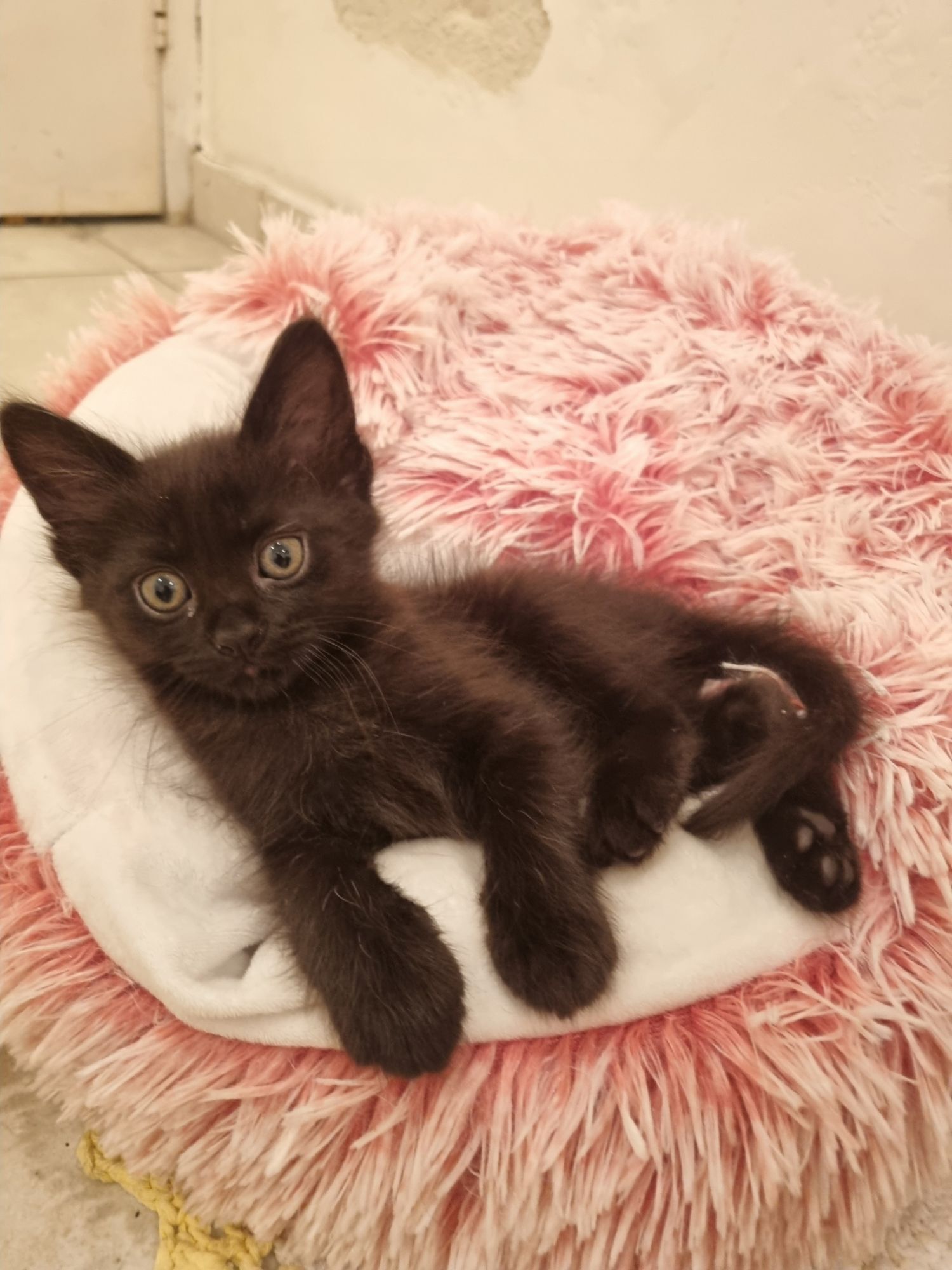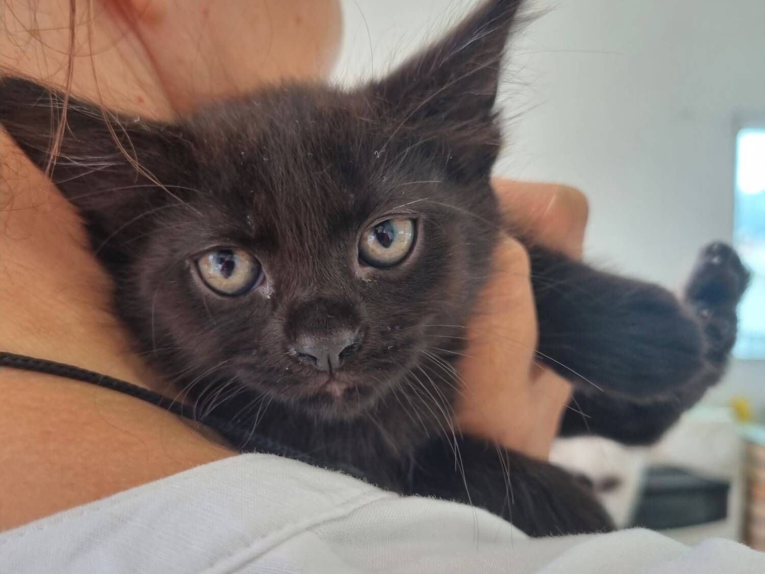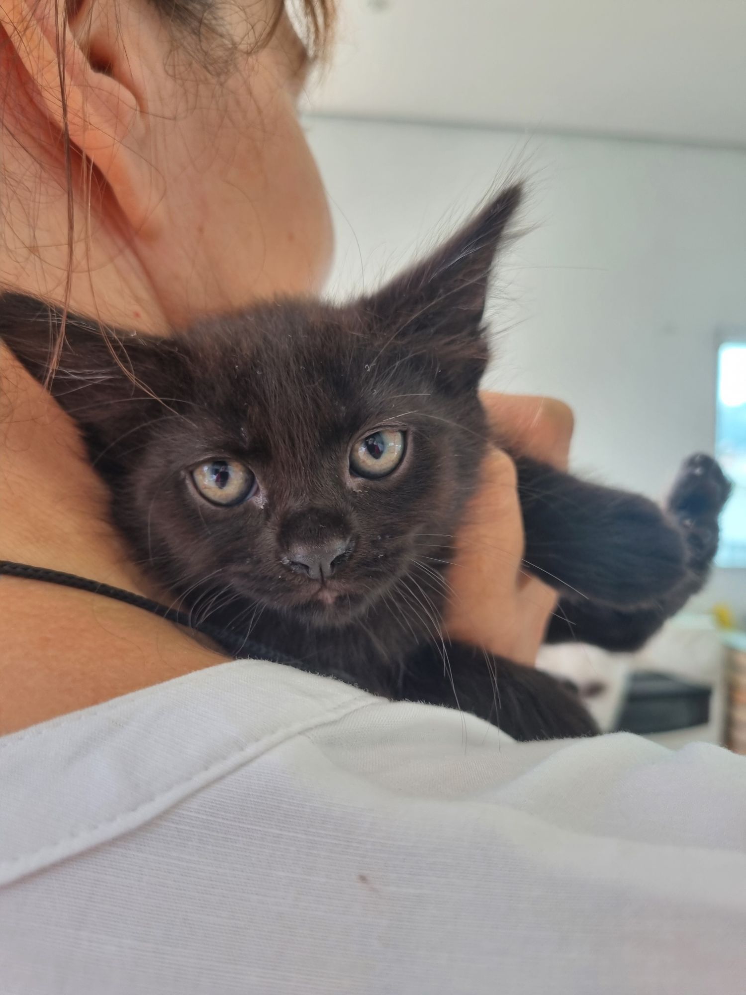 Nossos nomes são Sol (macho, pelagem acinzentada) e Lua (fêmea, pelagem preta) e nascemos no dia 27 de Dezembro de 2025, logo vamos fazer 2 meses de vida.
