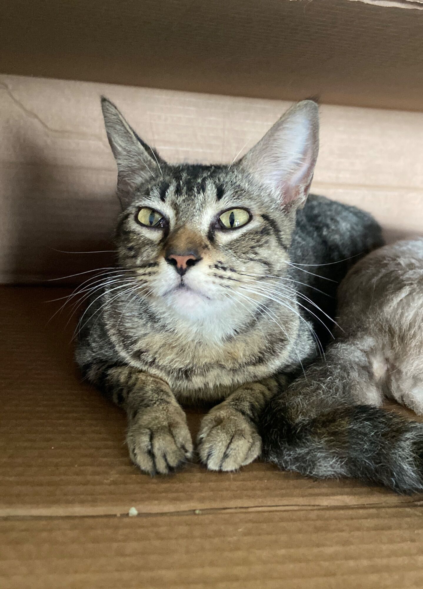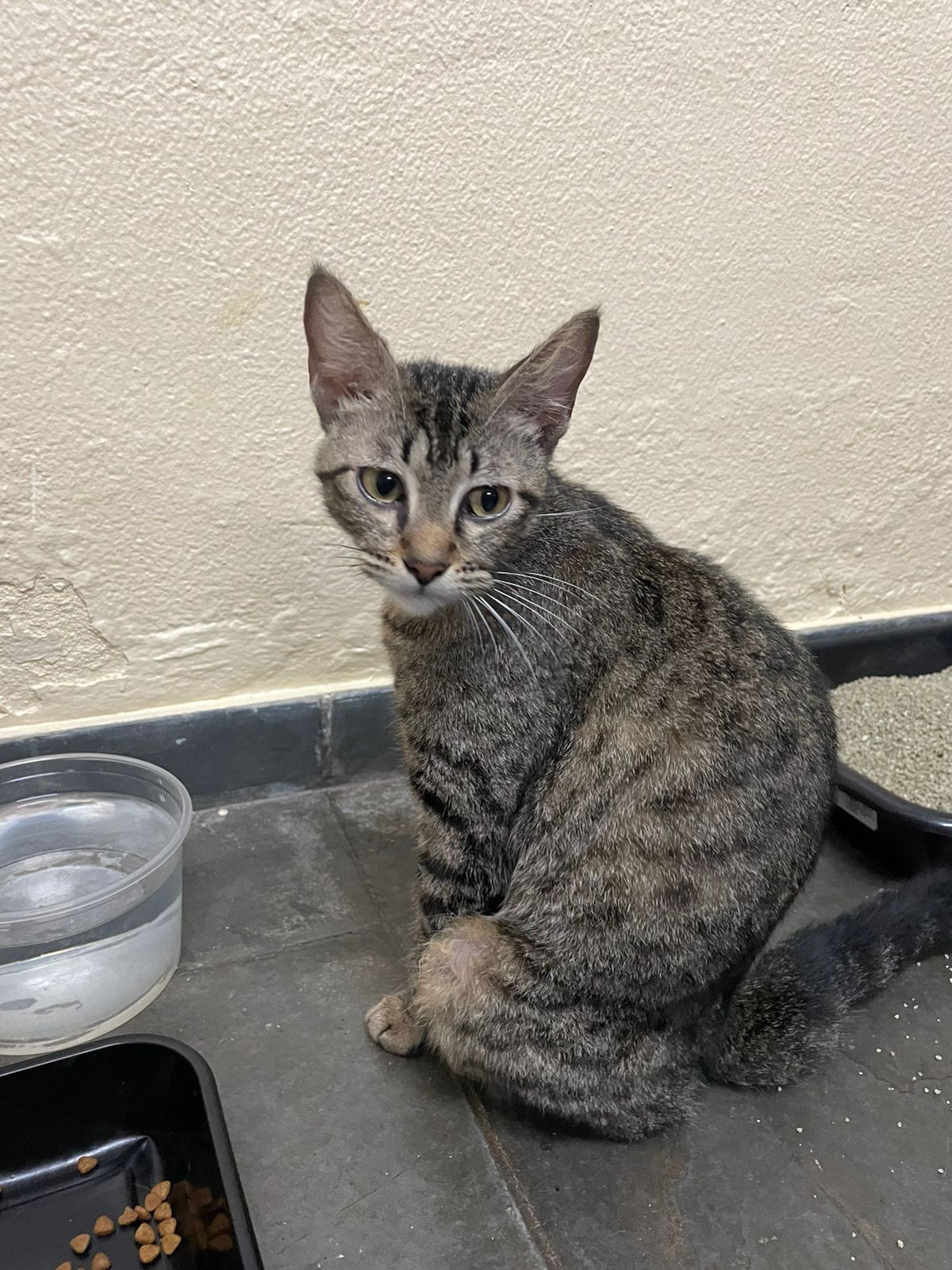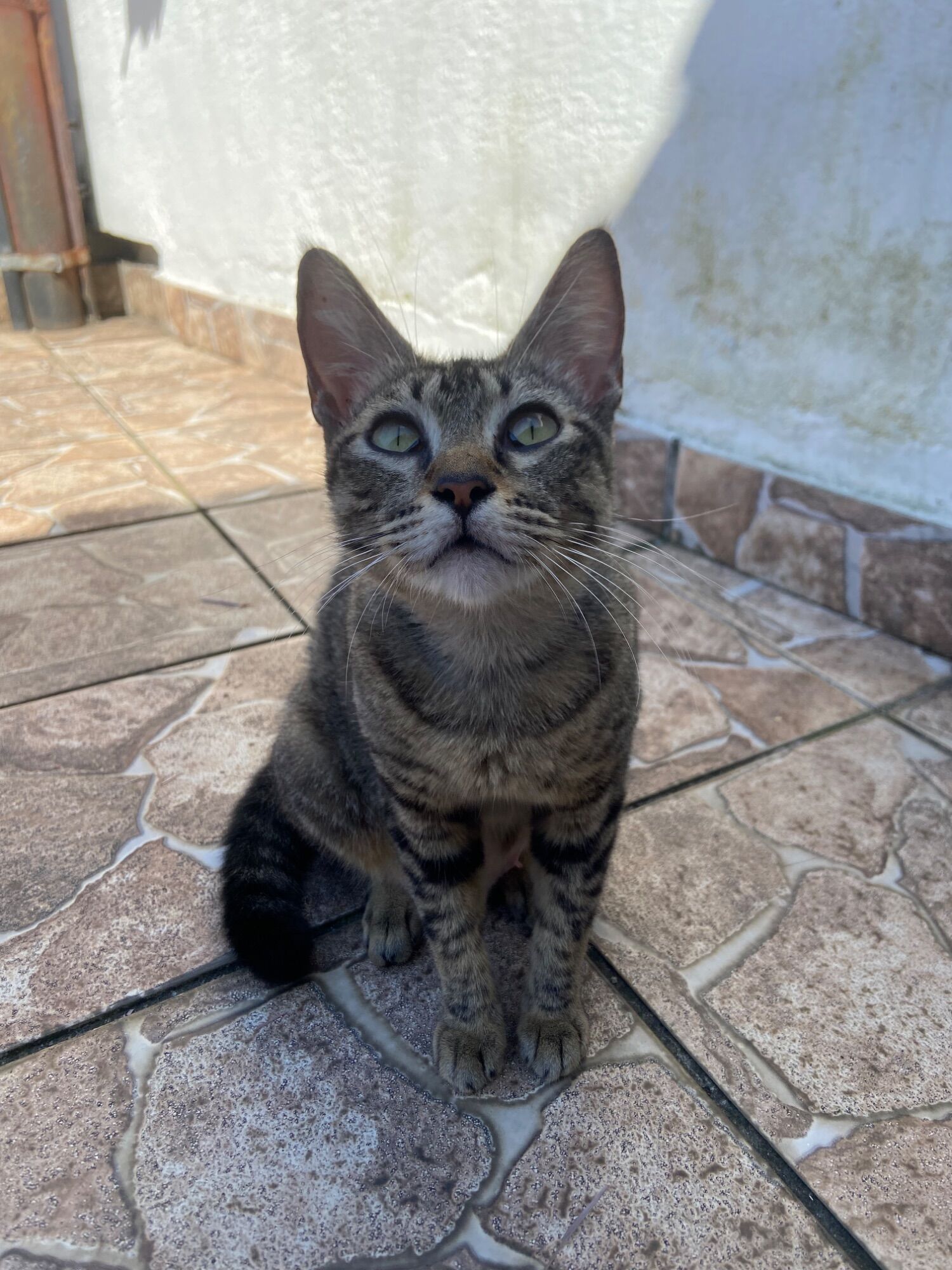 Encontramos a tigresa na rua já faz 2 semanas e colocamos para dentro de casa com medo dos riscos da rua. Ela é um amor de gata, adora brincar, não é nenhum pouco arisca e extremamente curiosa e dócil. Essa gatinha quer muito receber um dono que de muito amor á ela.