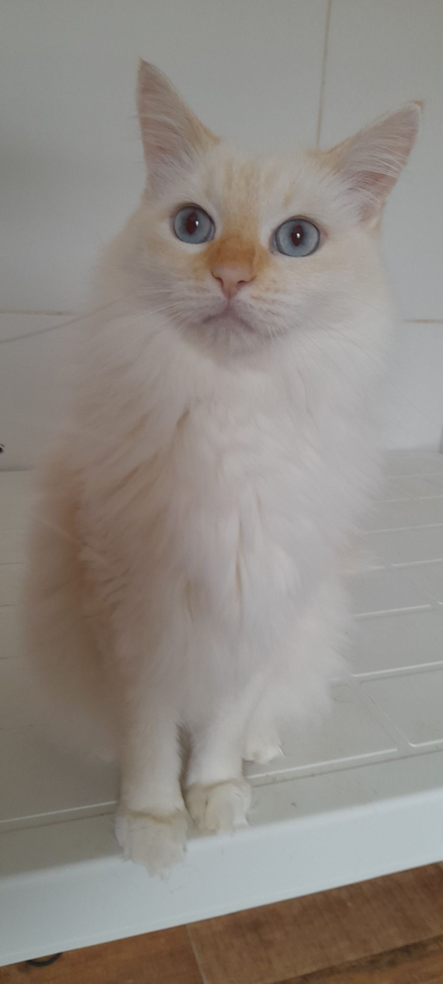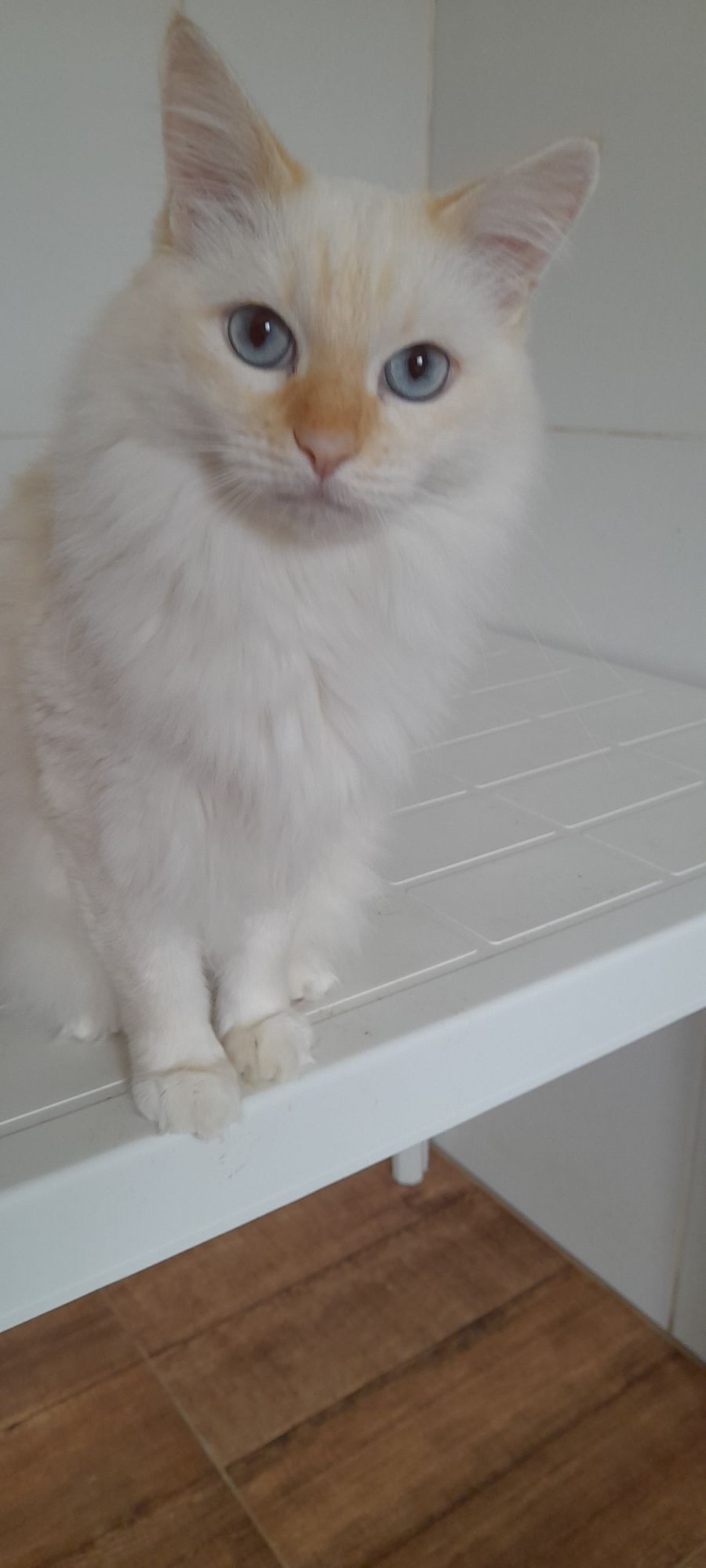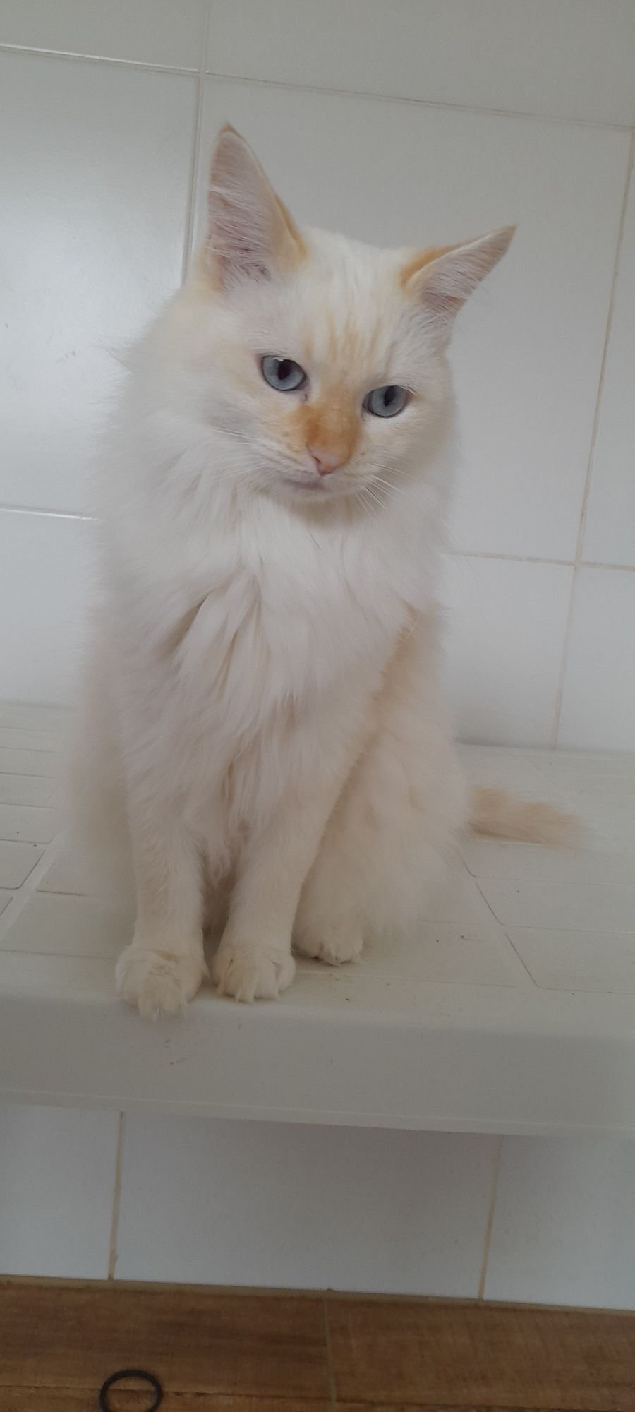 Este é o Kaká, um adorável gato macho da raça SRD (vira-lata), com pelagem branca e 4 anos de idade. Ele é um verdadeiro amigo e precisa muito de ajuda!