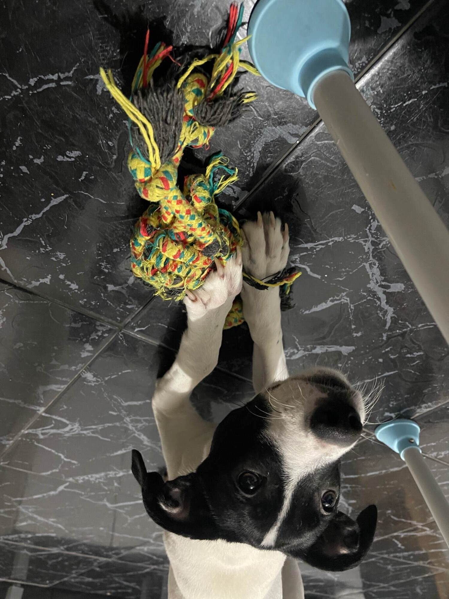 Brincalhão, adora correr, pular. É super divertido e amoroso.