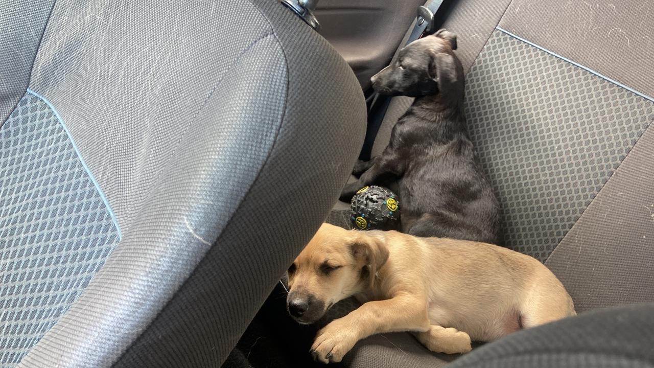 São dois filhotes com aparentemente dois meses. A fêmea tem a pelagem marrom e o macho tem pelagem preta. São bem dóceis, é carinhosos.