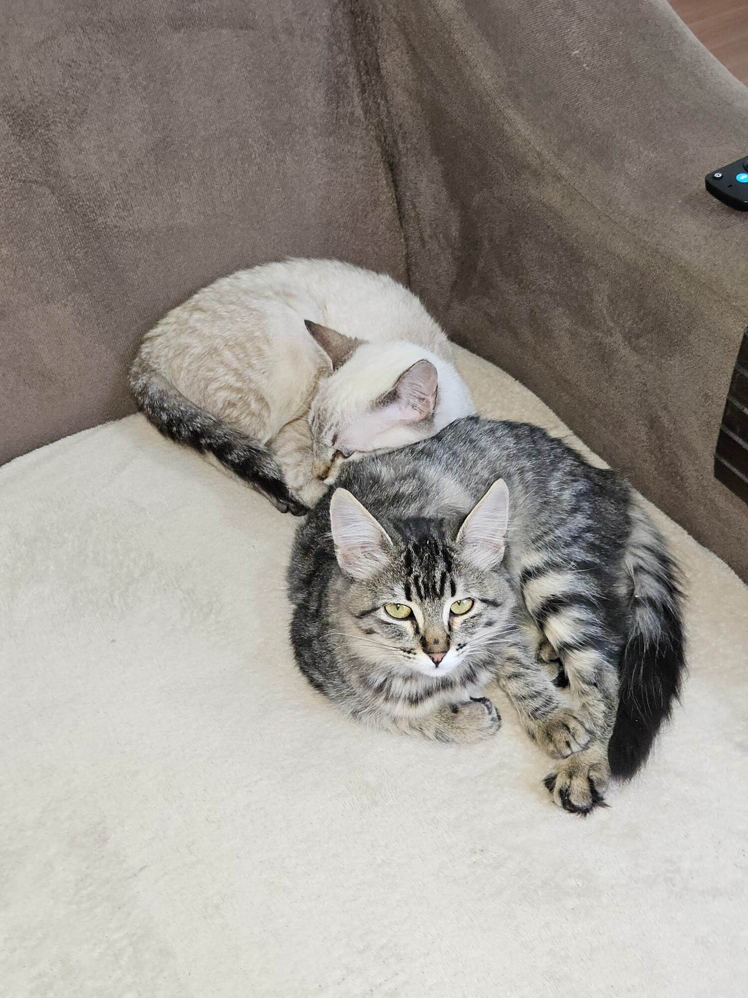 Gostaria que as duas ficassem juntas, infelizmente ao adotar elas nao imaginei que faria mal a minha saúde, minha alergia agravou de uma forma muito ruim, e nao consigo mais ficar com elas.