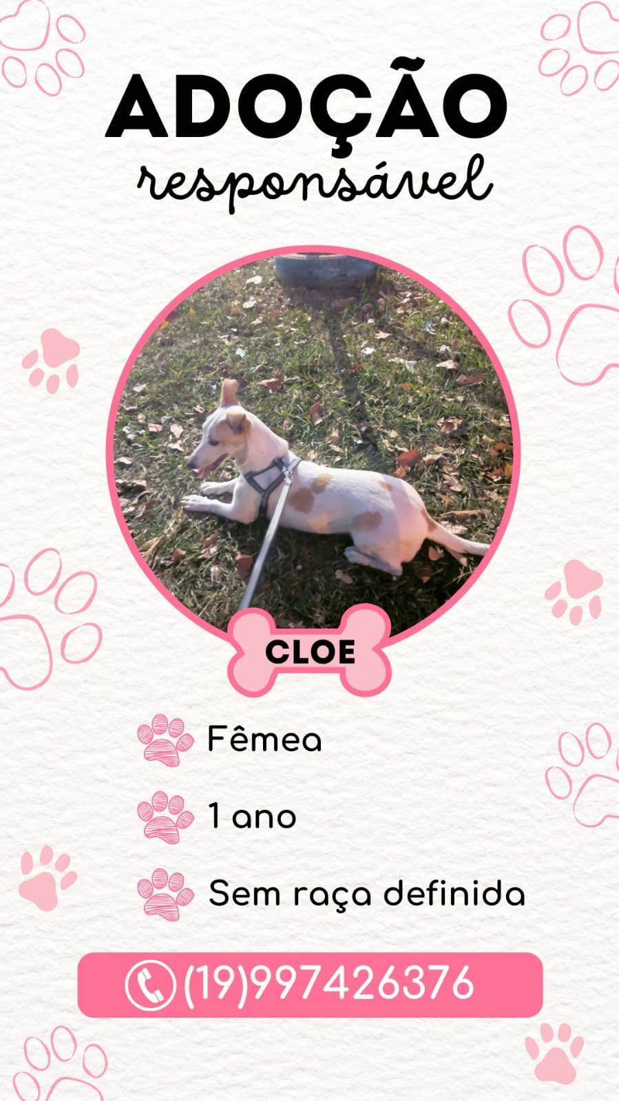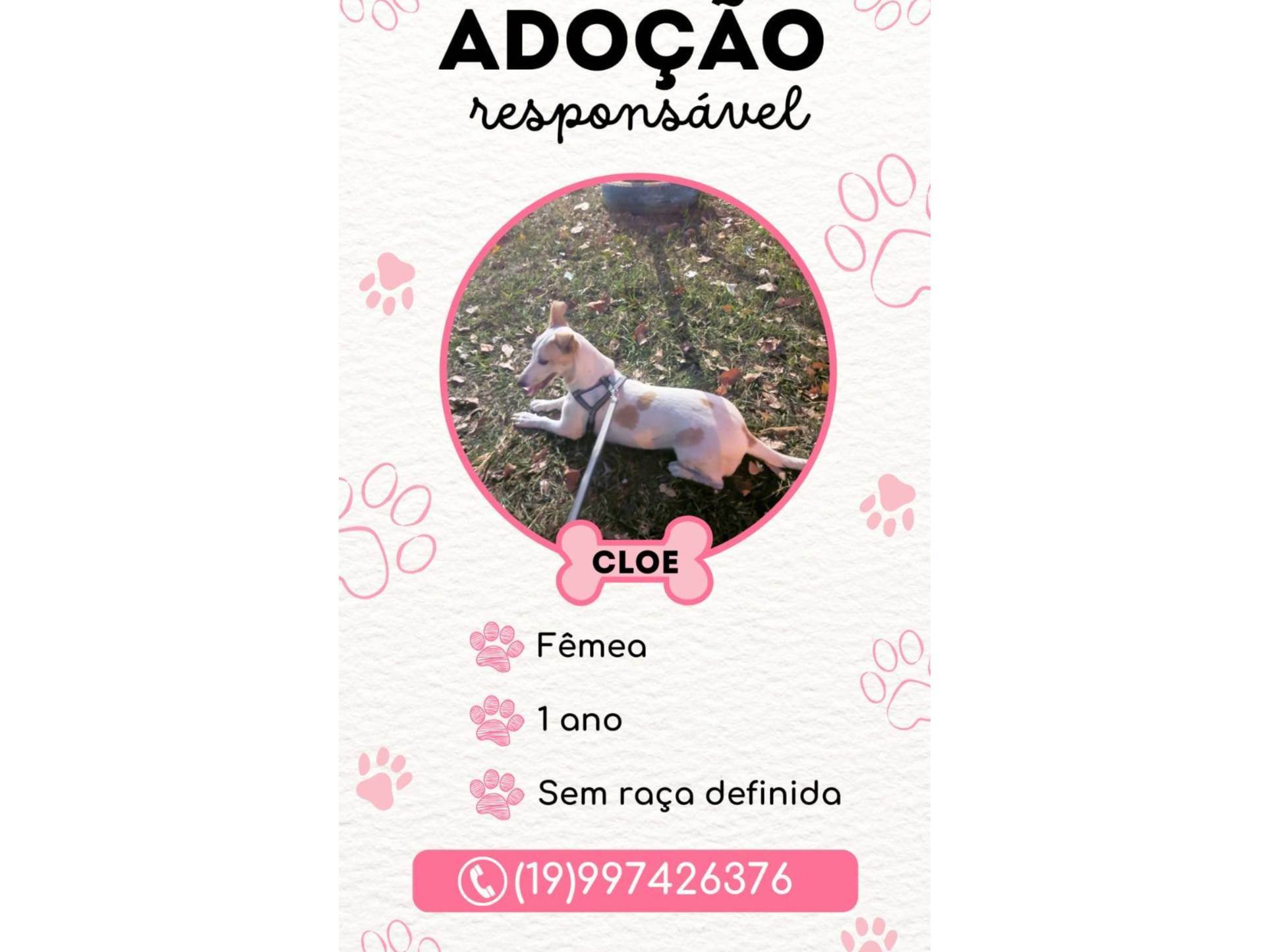 É uma cachorra de porte médio, branca com manchas caramelo de pelagem curta. É super carinhosa e amorosa, nunca avançou em ninguém, nem em outros cachorros, cresceu com crianças e gato, sem nenhum problema, é a companhia perfeita para qualquer pessoa que gosta de amor.