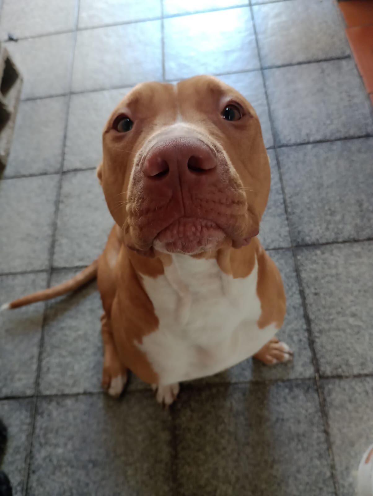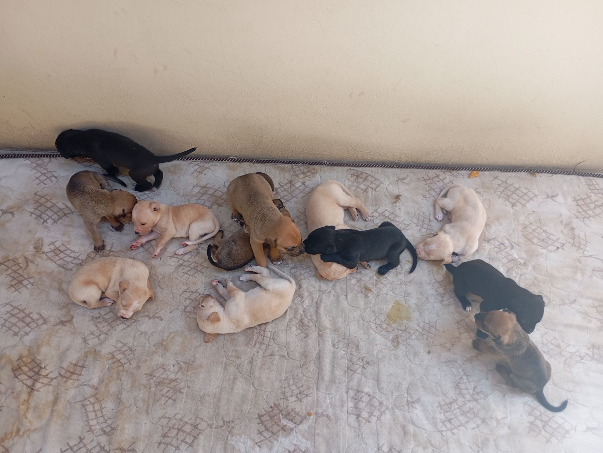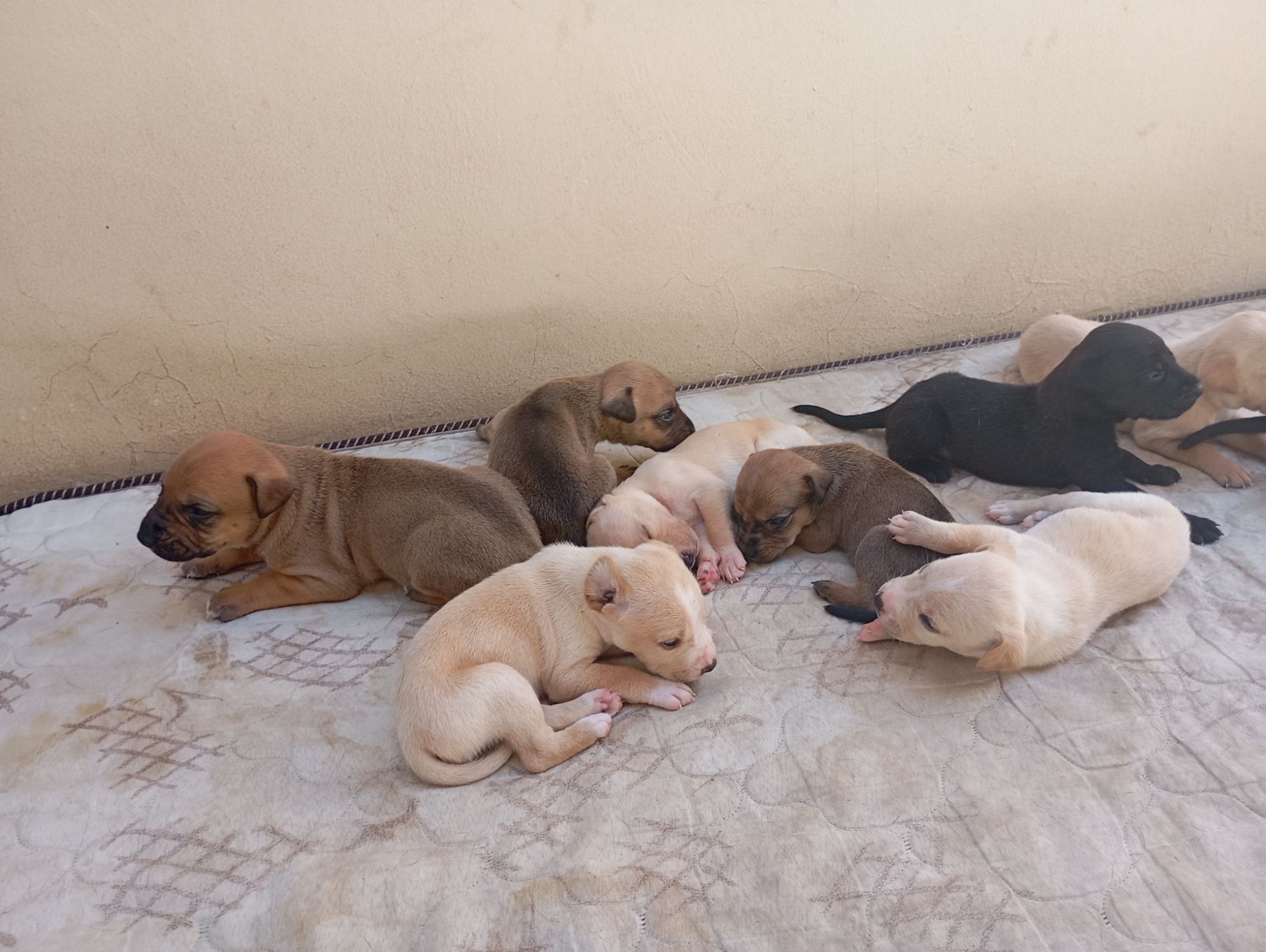 Olá, minha cadela teve filhotes recentemente. Eles são uma mistura de pitbull com labrador, nas cores bege, marrom e preto.