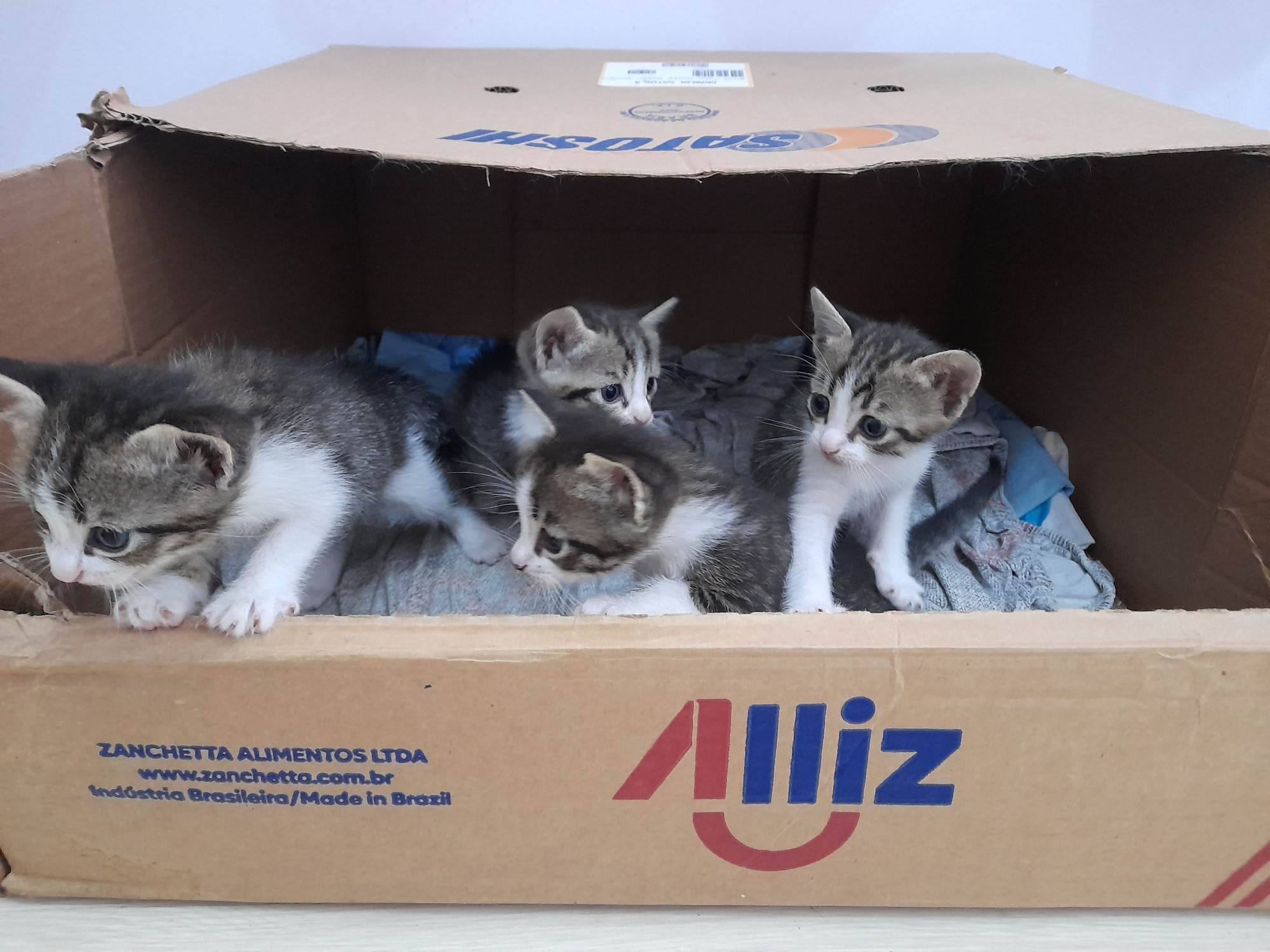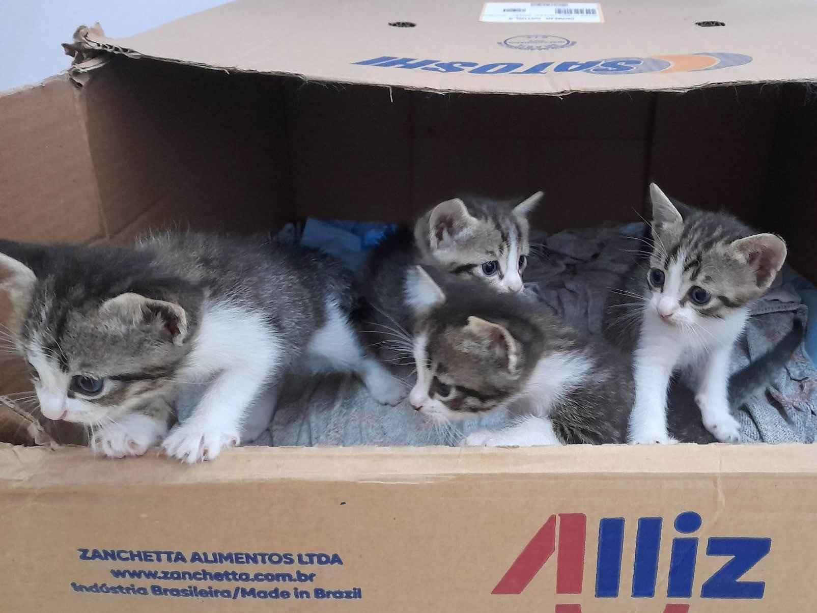 Temos 4 gatinhos, cria da nossa gata, mas infelizmente não podemos ficar com eles, estamos procurando um lar.